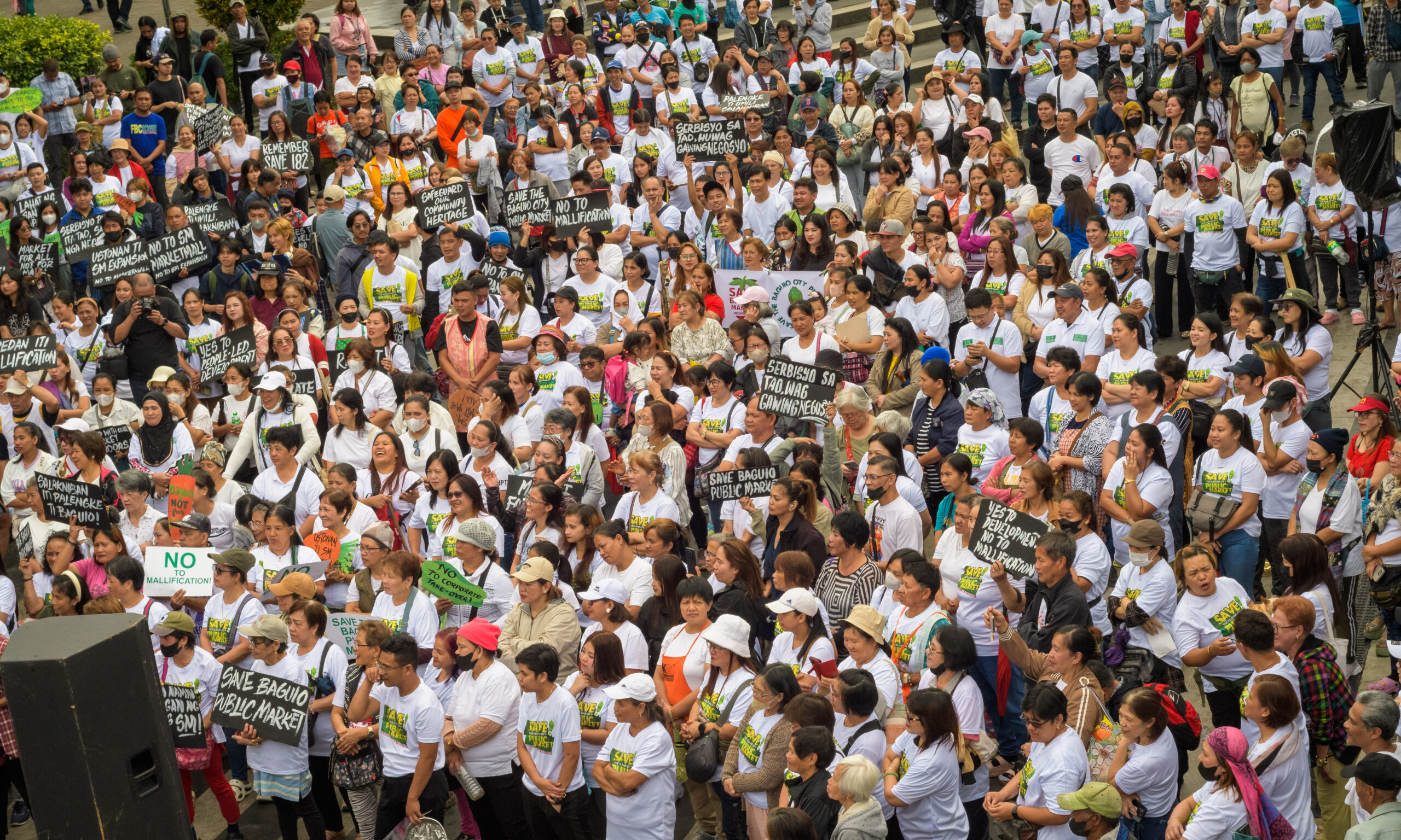 Protesters carried placards declaring “Save the Baguio Public Market” and “Stop the SM Expansion,” denouncing what they described as the “mallification” of the city’s cultural and economic hub.