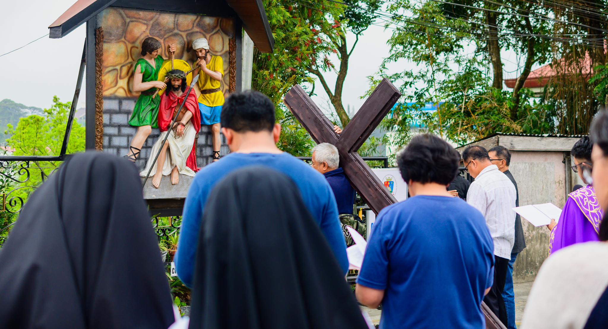 A mix of parishioners and visitors joined the observance, forming a steady procession that moved deliberately from one station to the next. Some bowed their heads in silence, while others recited prayers in unison, creating an atmosphere marked by reverence and contemplation.