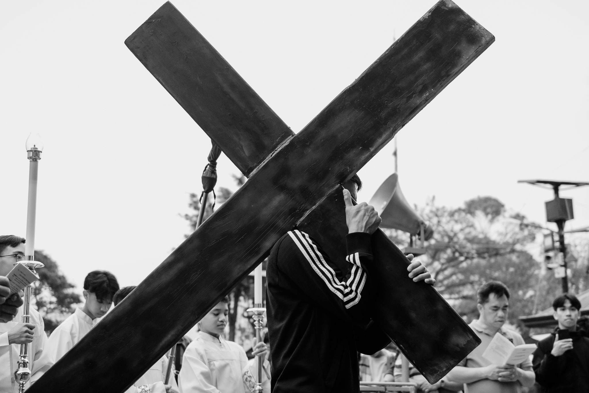 Beginning at 4 p.m., participants carried a wooden cross across the cathedral grounds, stopping at each station for prayers and quiet reflection.