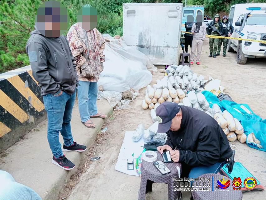BAKUN, Benguet — Two men from Parañaque City were arrested after police seized ₱17.7 million worth of dried marijuana during a hot pursuit operation in Bakun, Benguet, on Tuesday morning, November 4.