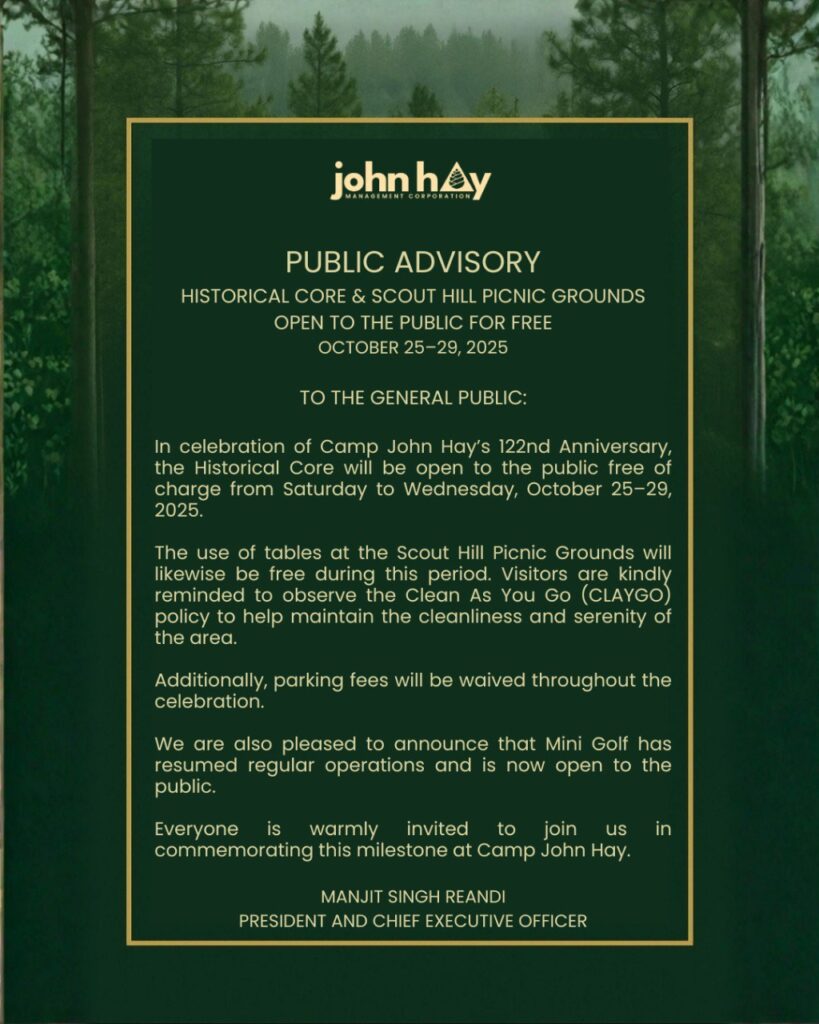 As Camp John Hay continues to balance heritage, recreation, and forest preservation, the anniversary serves as both a celebration and a reminder of why the landmark remains a beloved sanctuary in the heart of Baguio City.