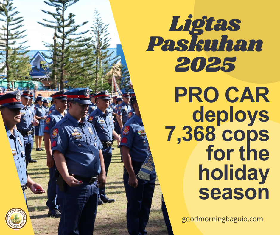 BAGUIO CITY — Over 7,000 police personnel have been deployed across the Cordillera Administrative Region to ensure public safety during the Christmas and New Year celebrations from December 16, 2025, to January 6, 2026.
