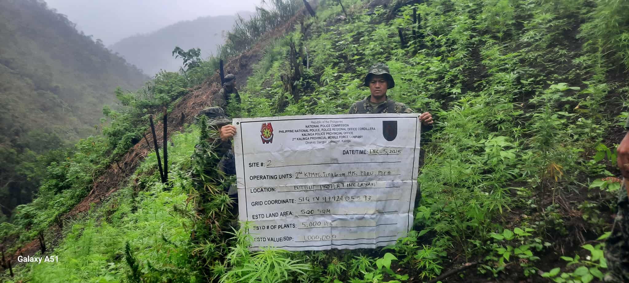 CAMP BADO DANGWA, La Trinidad, Benguet — Police authorities in the Cordillera Administrative Region discovered more than PhP5.3 million worth of marijuana in a series of eradication operations conducted in Benguet and Kalinga on December 5, 2025, according to the Police Regional Office–Cordillera (PRO-CAR).