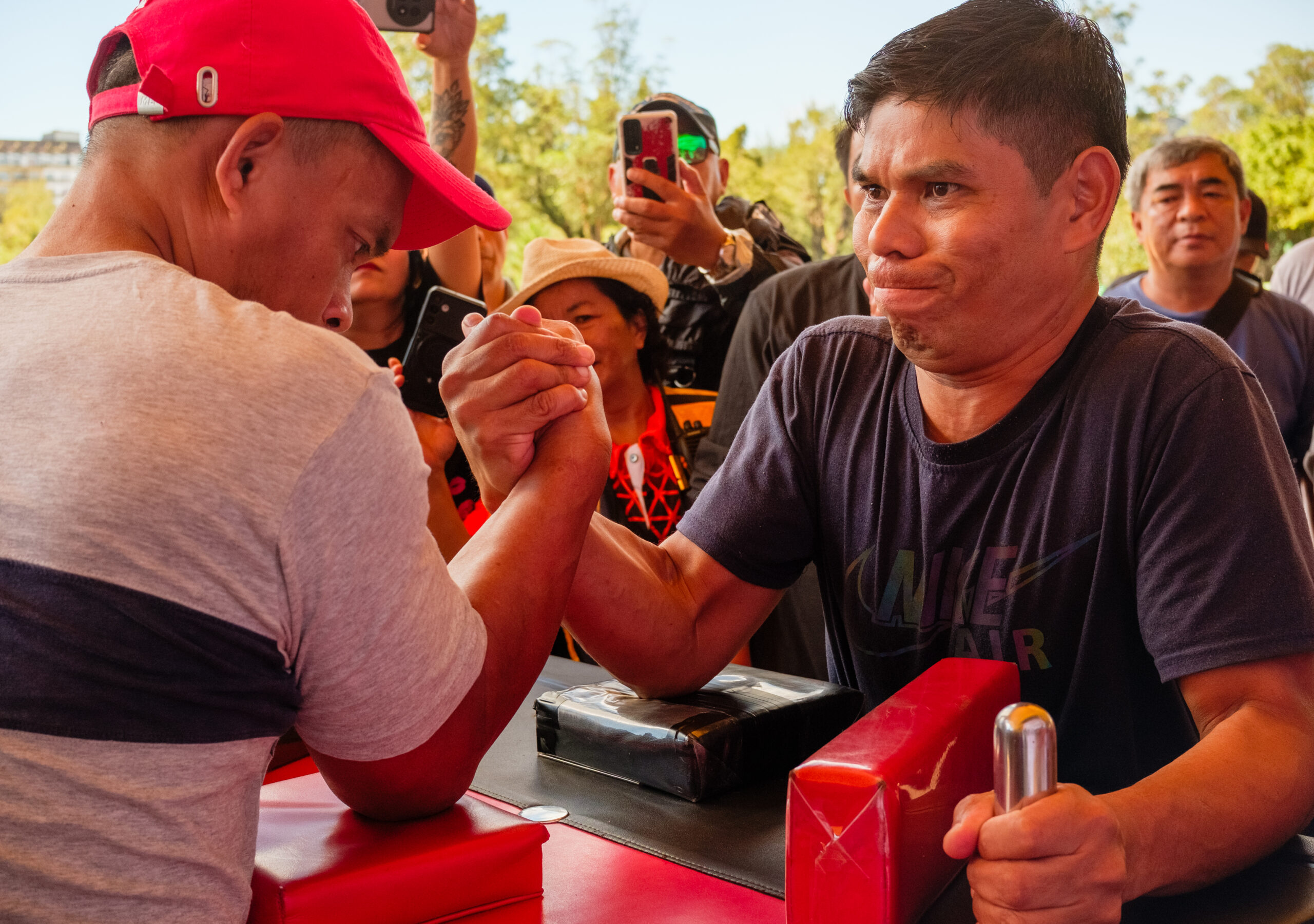 • Arm wrestling tested strength and camaraderie among barangay participants.
