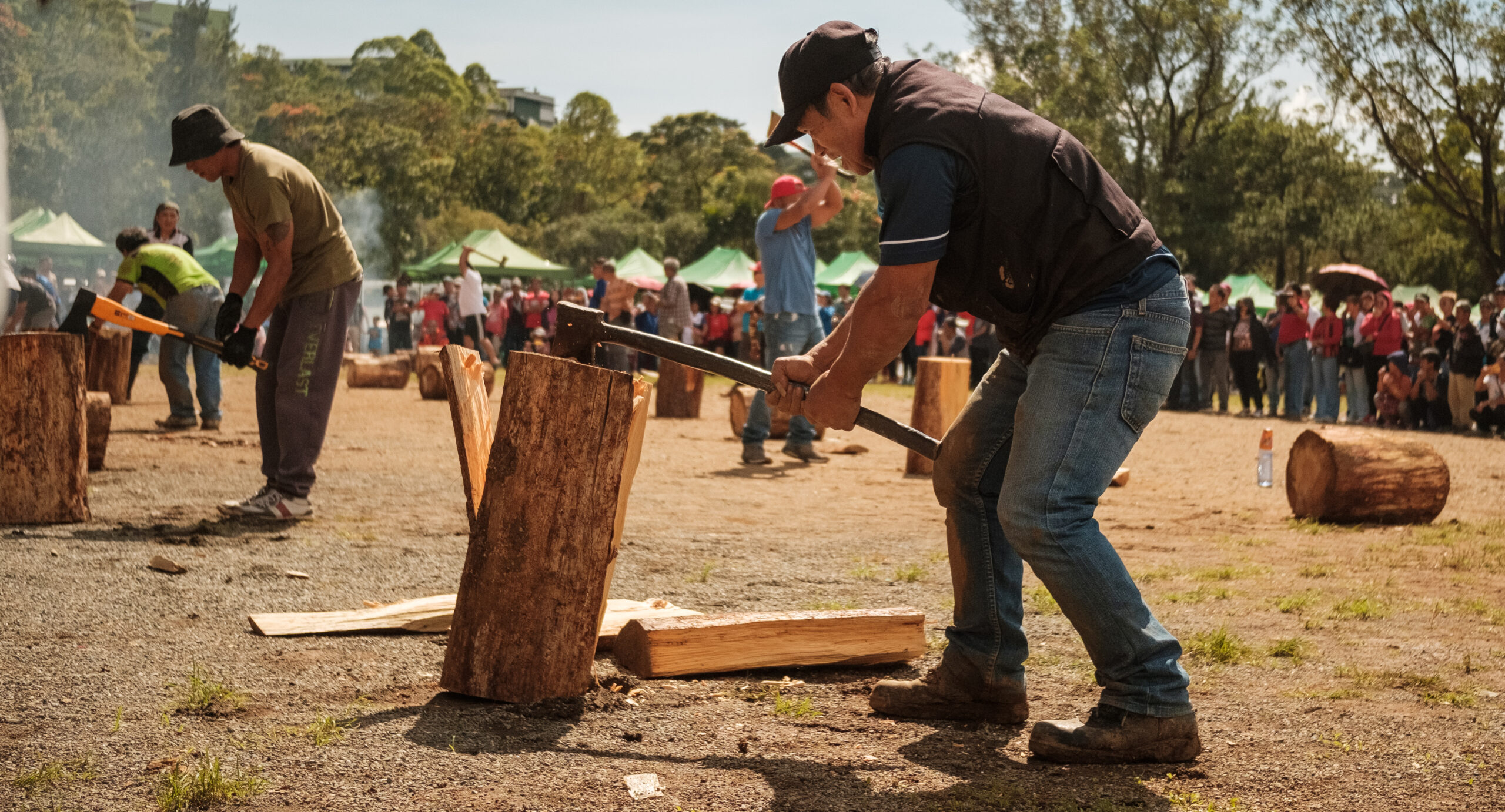 Participants split logs in timed competition, honoring indigenous livelihood practices while symbolizing resilience and resourcefulness.