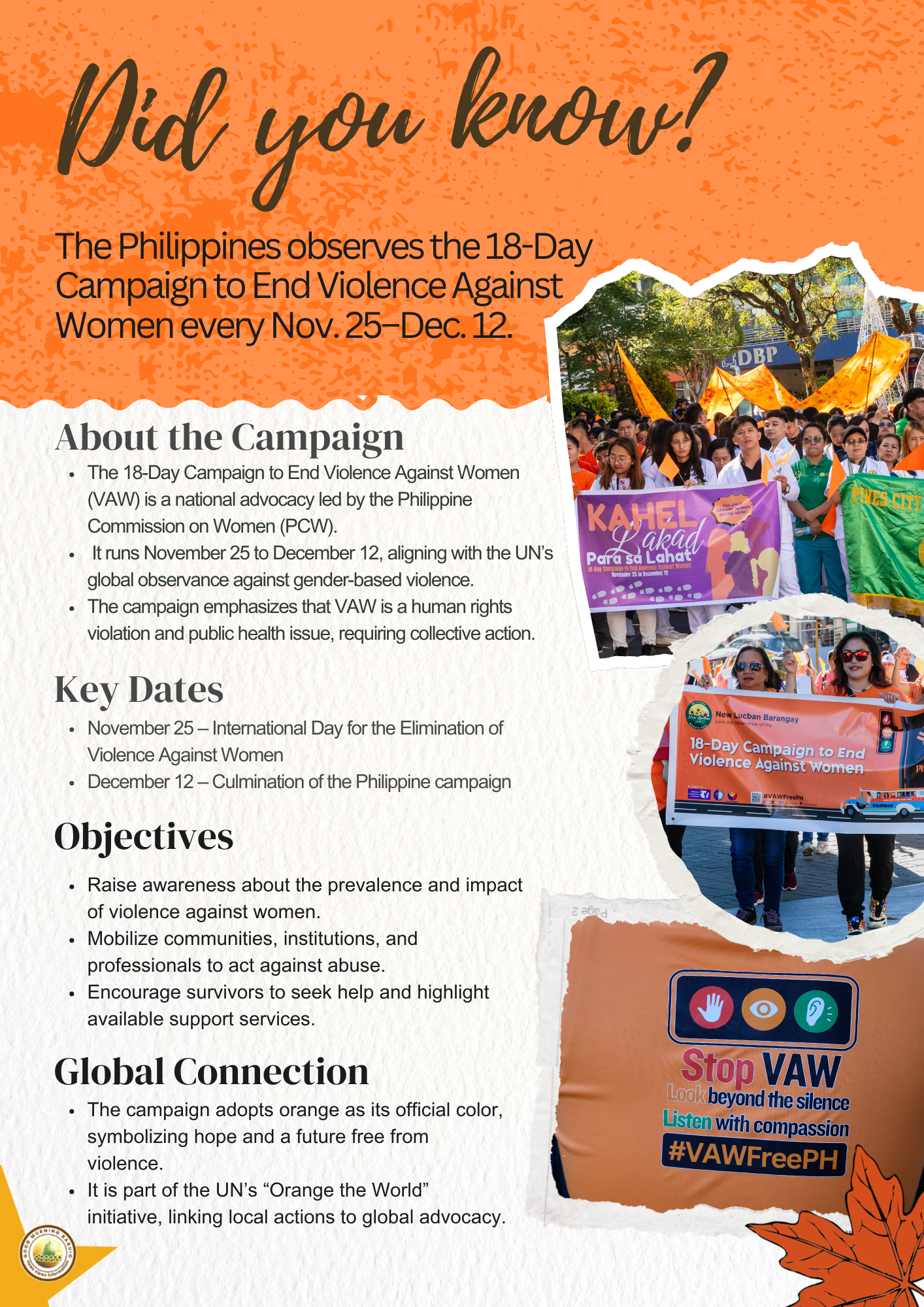The 18-Day Campaign, spearheaded by the Philippine Commission on Women, aligns with international observances against gender-based violence.