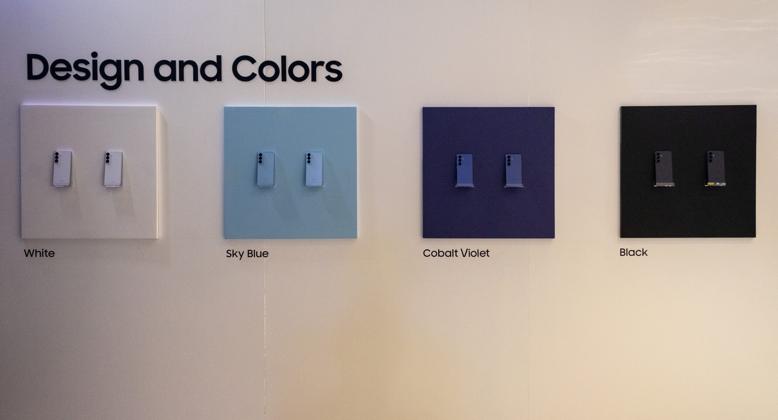 Color options include Cobalt Violet, White, Black and Sky Blue, with Samsung.com-exclusive Pink Gold and Silver Shadow variants.